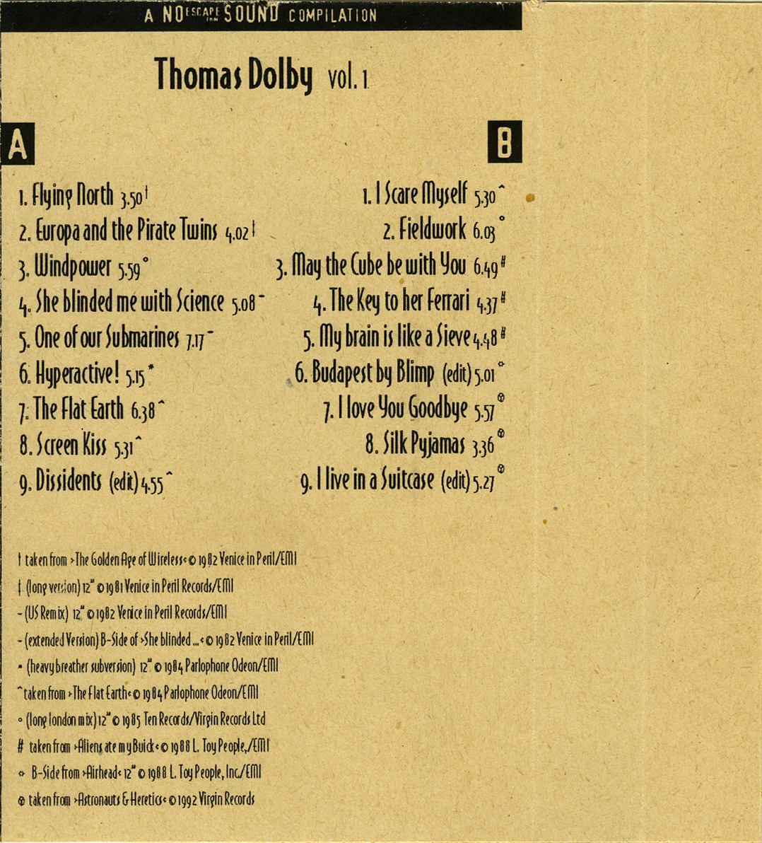 Thomas Dolby – A No Escape From Sound Compilation vol. 1