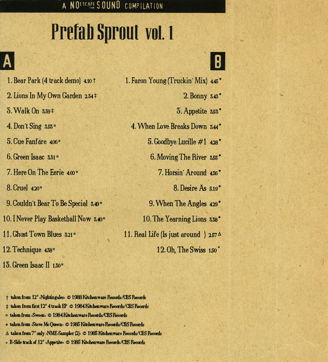 Prefab Sprout – A No Escape From Sound Compilation vol. 1