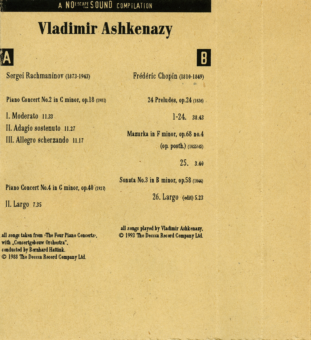 all songs taken from ›The Four Piano Concerts‹, with "Concertgebouw Orchestra",
