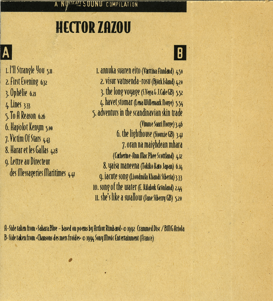 taken from ›Chansons des mers froides‹ © 1994 Sony Music Entertainment (France)